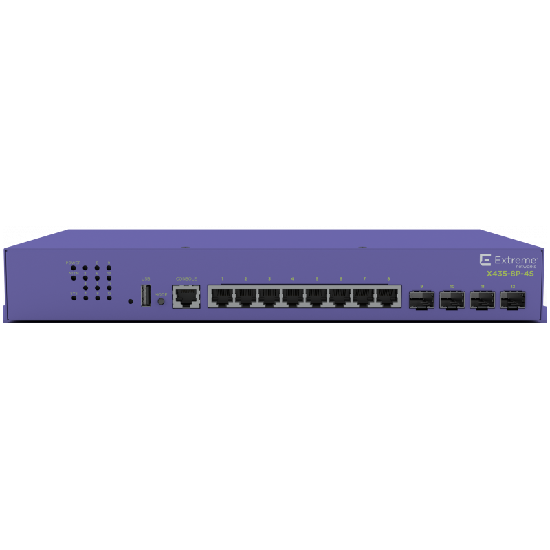 EXTREME NETWORKS X435-8P-2T-W on hallinnoitu 8 portin kytkin, joka on suunniteltu räkkiin asennettavaksi. Kytkimessä on prosessien muistisuojaus sekä itsekorjautuva prosessin palautus, mikä mahdollistaa prosessin uudelleenkäynnistyksen tai hitless failoverin. Kytkimessä on myös dynaaminen lataus uusille toiminnoille, skriptoitava CLI automatisointiin ja tapahtuman käynnistämiin toimiin sekä avoimet XML-sovellusliittymät kolmannen osapuolen sovellusten integrointiin. Kytkimessä on myös dual-stack IPv4- ja IPv6-tuki. Tärkeimmät ominaisuudet: